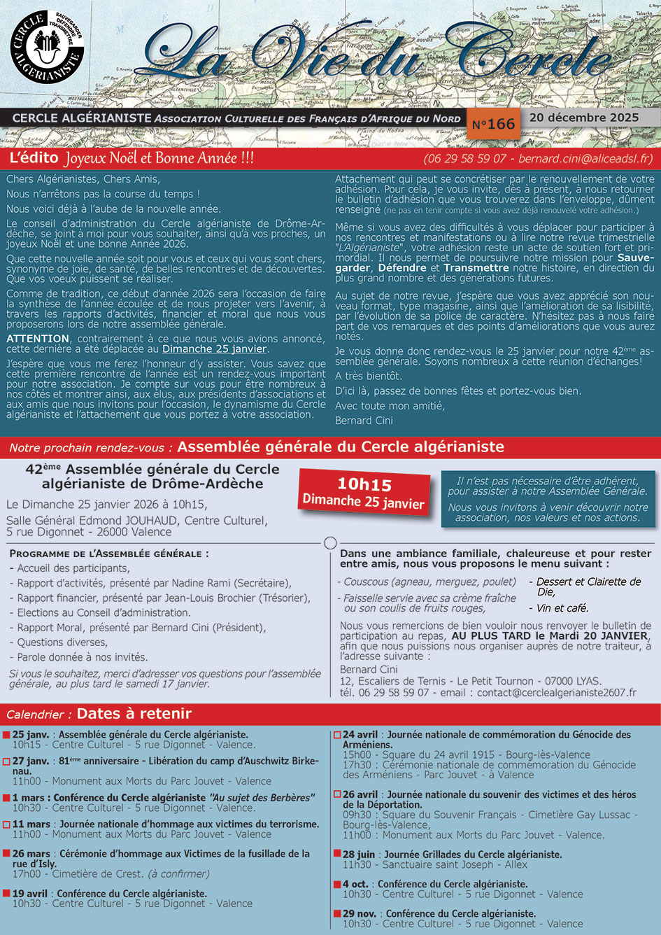 Joyeux Noël & Bonne année 2026 (Pour plus de détails, merci de vous reporter à "La Vie du Cercle n°166)