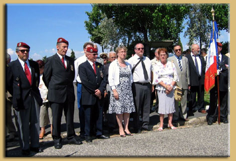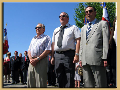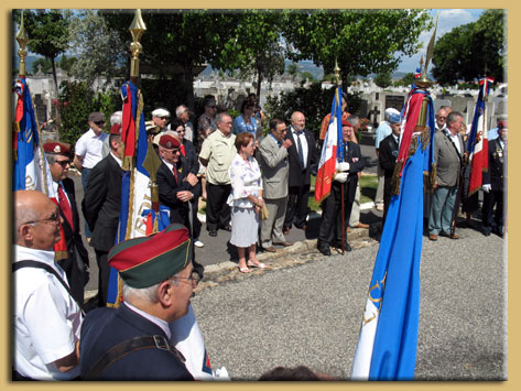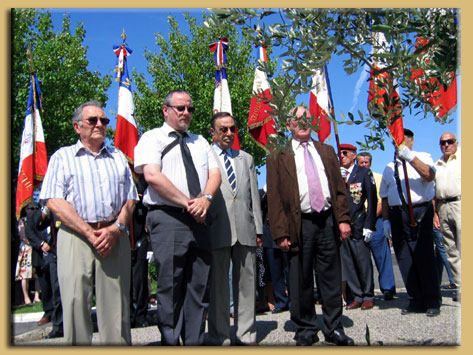Madame MARITON (représentant M. Mariton, Député Maire de Crest), Monsieur SAGNARD (délégué aux affaires patriotiques), Messieurs les présidents, BAUDIER (Centre Culturel des Rapatriés et du CAPFA), CINI (Cercle algérianiste de Drôme Ardèche), SEROR (ANFANOMA), X (représentant monsieur De Torres de l'AFNR), WOZNIAK (Cadre de réserve Drôme Ardèche), HOURSON (UNP Drôme Ardèche), ROXARD (Amicale des Paras de Drôme Ardèche), PLACE (ASAF Ardèche), MARQUEZ (Rhin & Danube), BERNADAC (ANT-TRN / UFAC Loriol), ASTIER (UNP St Claire du Rhône), les 15 porte-drapeaux ainsi que les nombreux sympathisants.