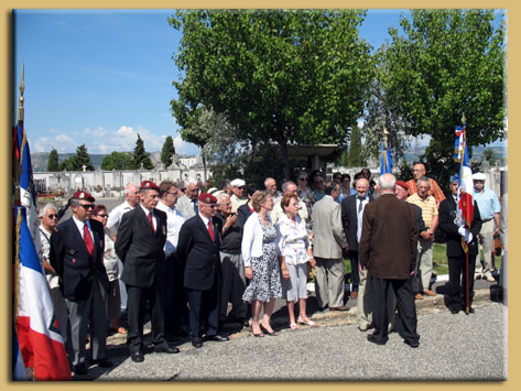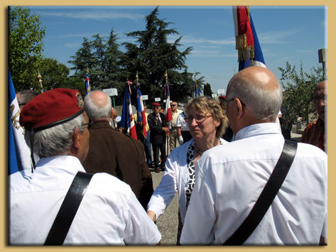Il y a eu un dépôt de gerbe au pied de l’olivier de la paix, suivie d’une minute de silence. La ville de Valence était représentée par Georges Sagnard. Hervé Mariton, excusé pour son absence, avait délégué sa représentation à son épouse.