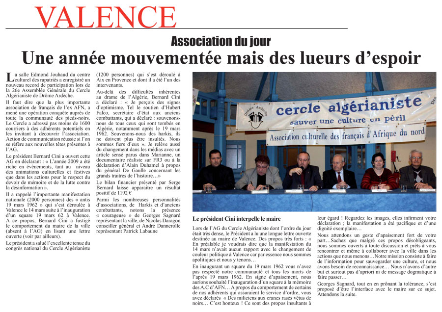 Le Dauphiné Libéré a publié le 28 janvier dans ses colonnes, un article concernant notre assemblée générale du 24 janvier 2010.