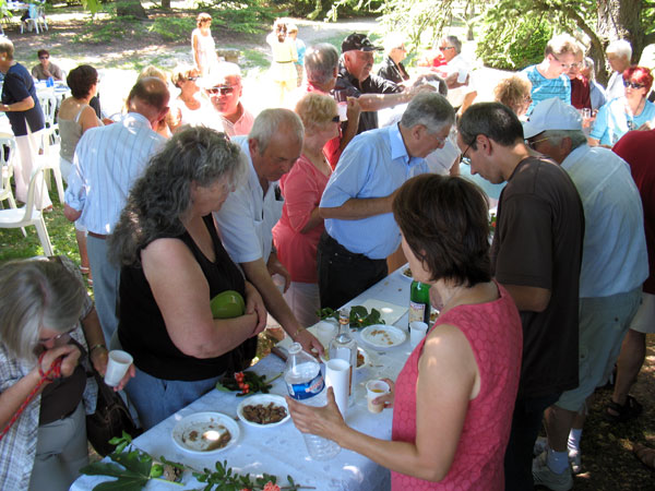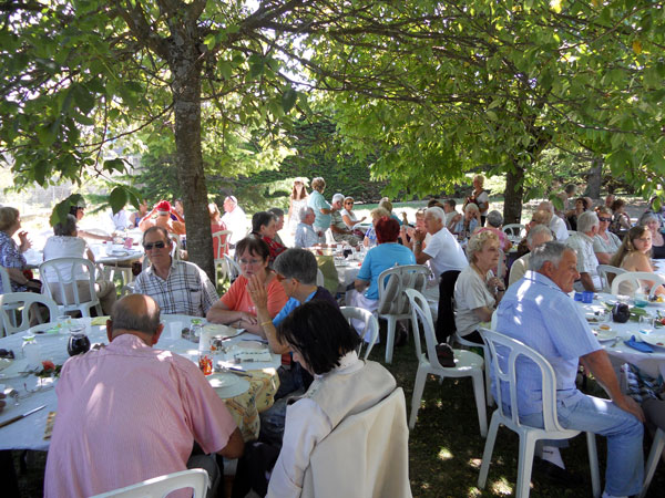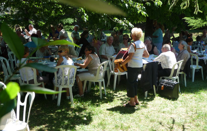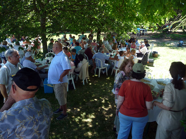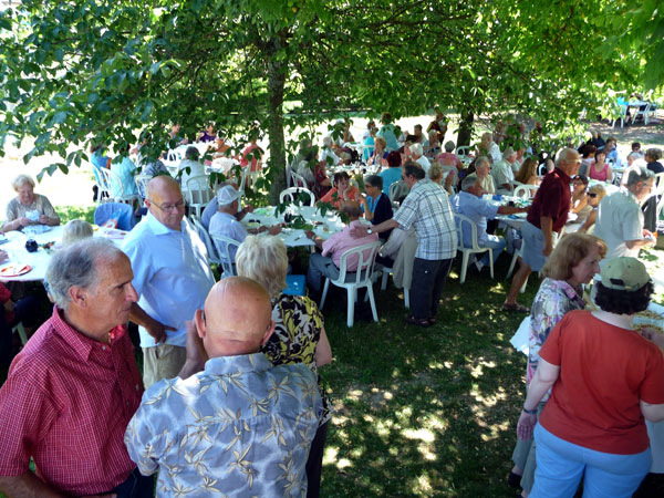 Les nombreux convives ont pu profiter de l’ombre des arbres et ainsi supporter la chaleur accablante de cette belle journée d’été. |