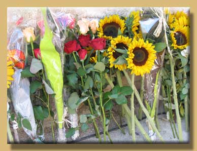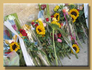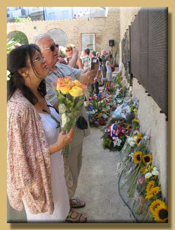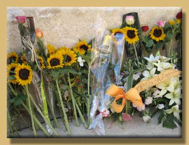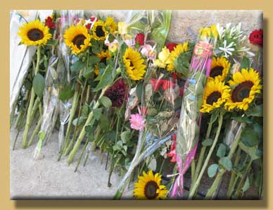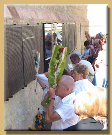 Chaque participant a déposé en offrande une fleur épanouie devant ce monument.