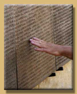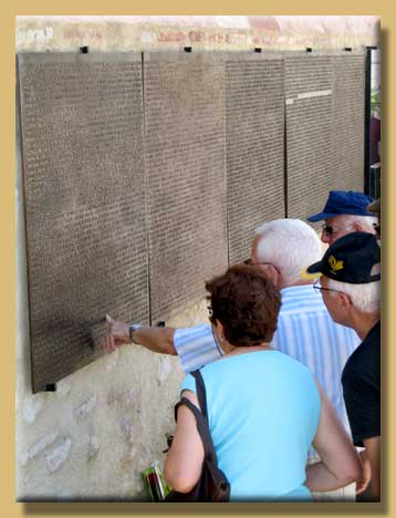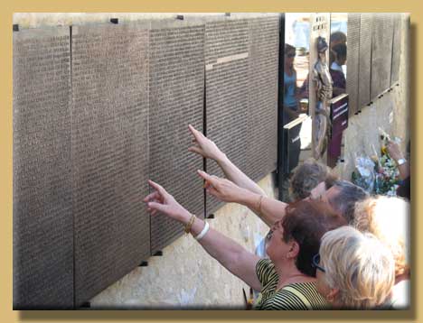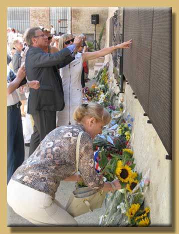 Qu'on vienne lire, et relire, les noms d'êtres chers aux uns depuis toujours, et devenus chers aux autres, à tous les autres, dans l'épreuve partagée. Qu'on vienne toucher, caresser, effleurer, polir, user le relief des lettres de bronze qui sont l'identité des défunts.