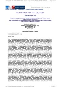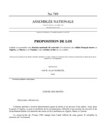 | Alain MARLEIX récidive à l'Assemblée Nationale, le 10 avril 2003, avec sa proposition de Loi pour la reconnaissance officielle de la date du 19 mars. | |||||||||||||||||||||||||||||||||||||